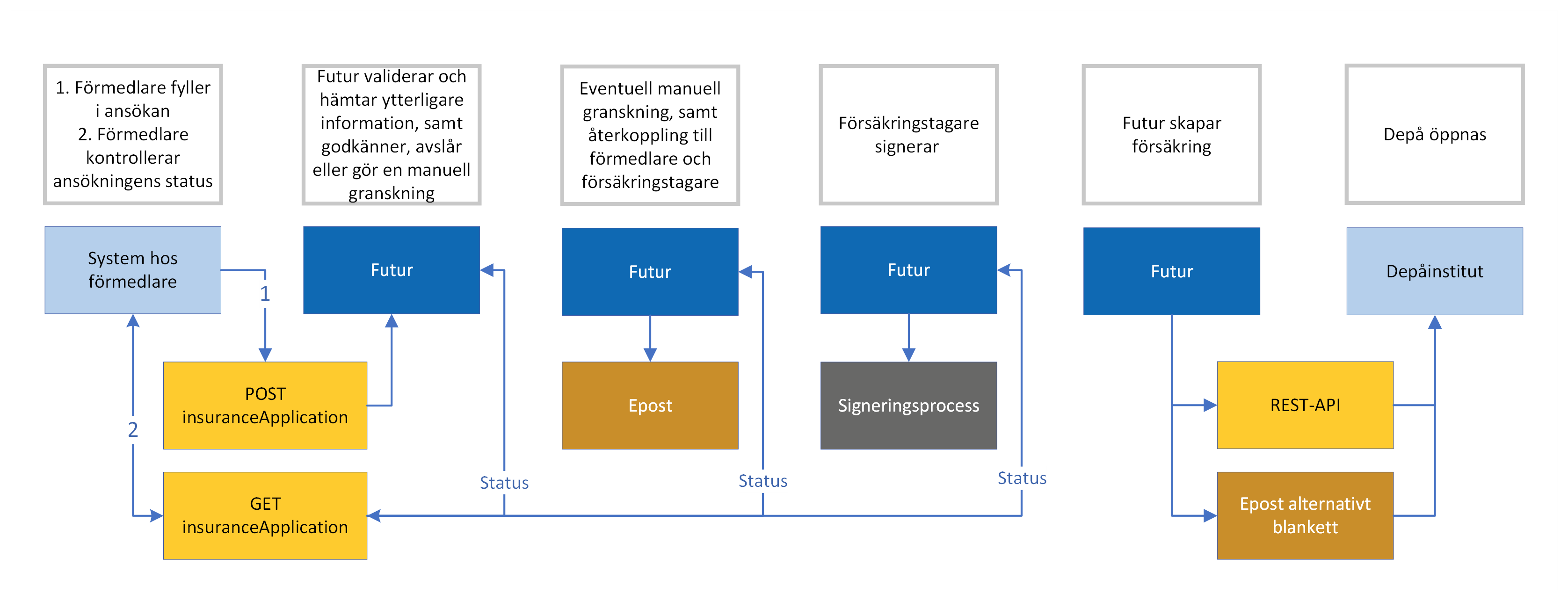 GET /InsuranceApplication/{id}Metoden returnerar ansökans status som förklaras (på engelska) här: