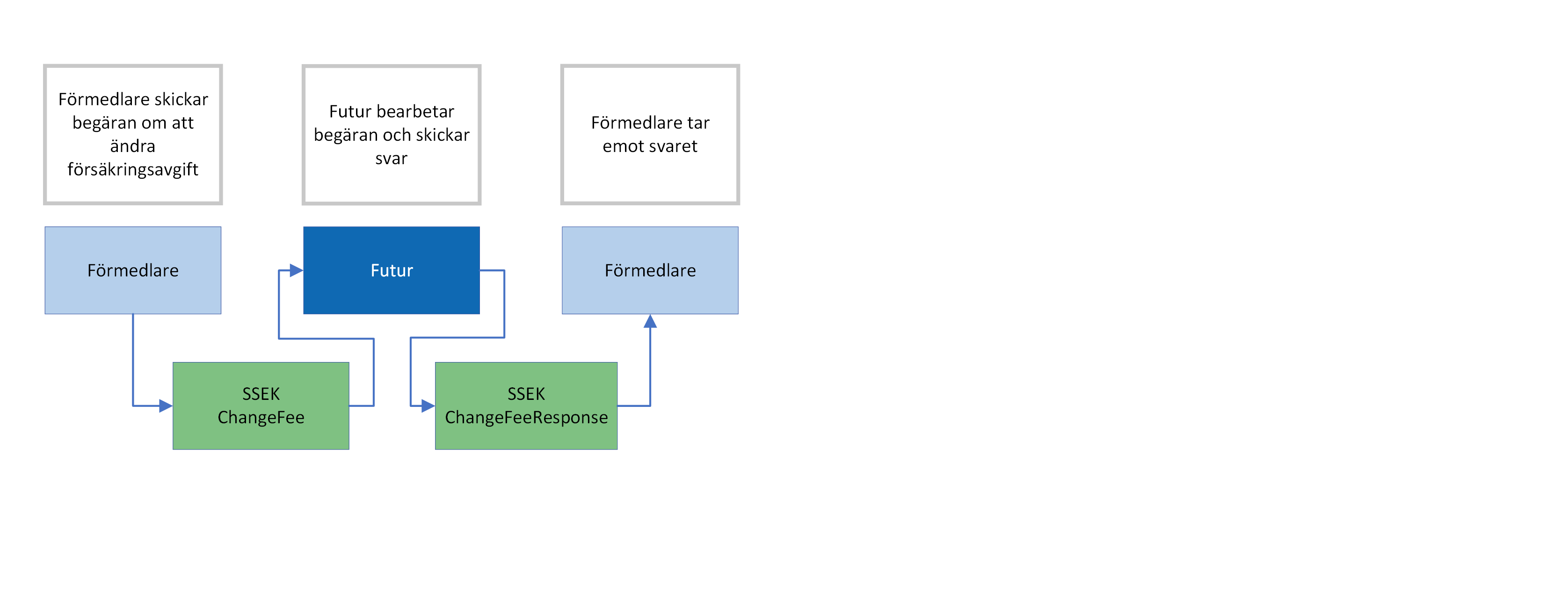Begäran om ändring av försäkringsavgift sker med XML-schemat ChangeFee. Efter att Futur bearbetat begäran, skickas ett svar med XML-schemat ChangeFeeResponse.