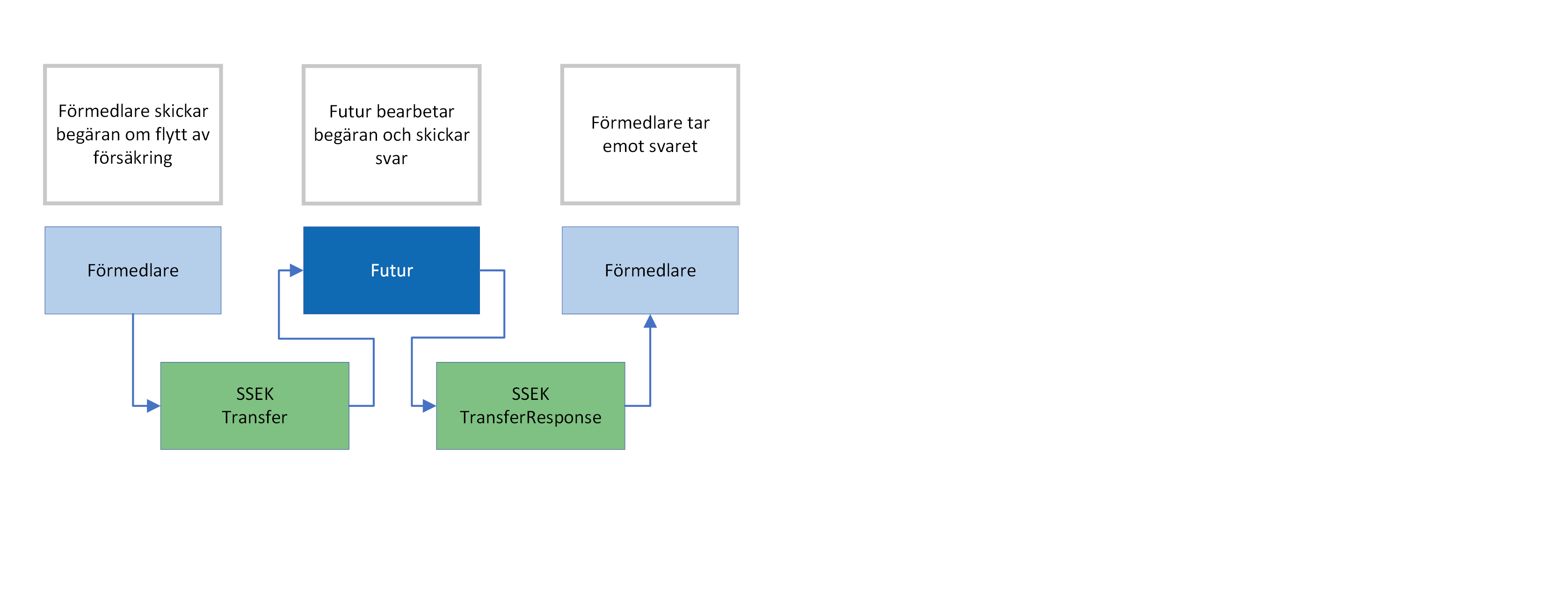 Begäran om att flytta en försäkring inom Futur sker med XML-schemat Transfer. Efter att Futur bearbetat begäran, skickas ett svar med XML-schemat TransferResponse.