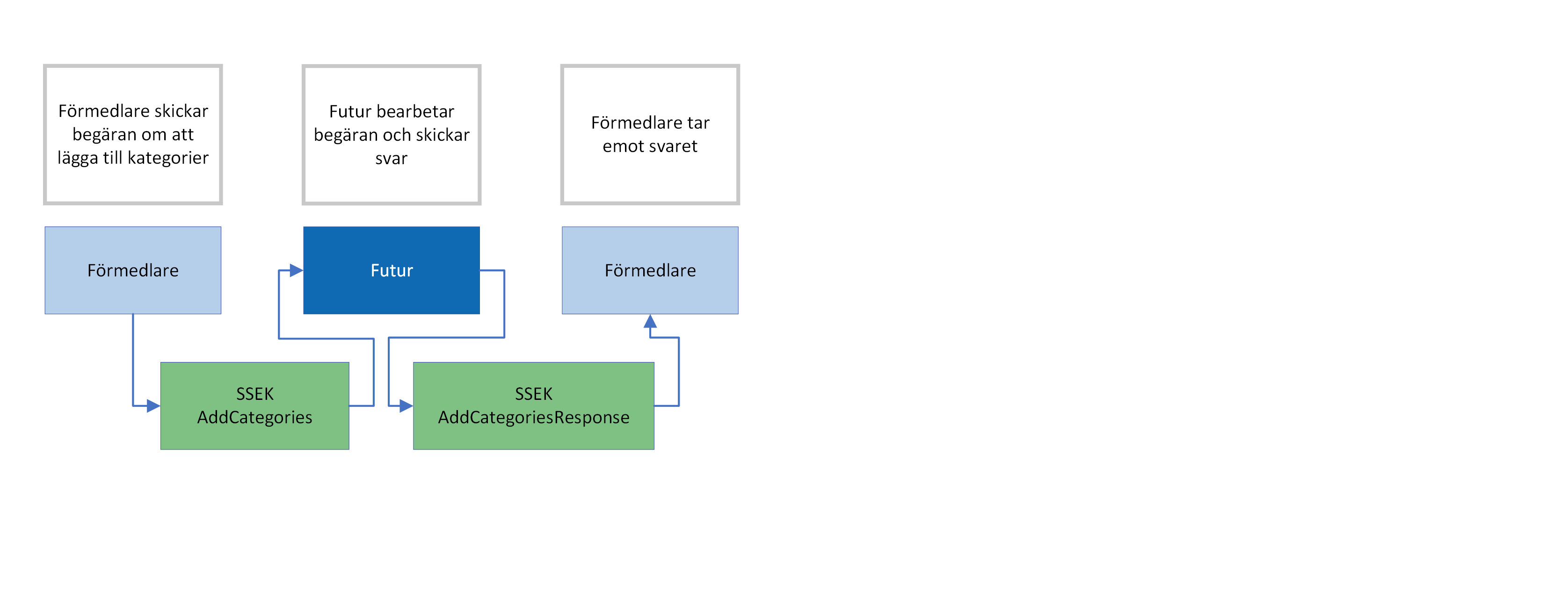 Begäran om att lägga till kategorier (förmånsgrupper) sker med XML-schemat AddCategories. Efter att Futur bearbetat begäran, skickas ett svar med XML-schemat AddCategoriesResponse.