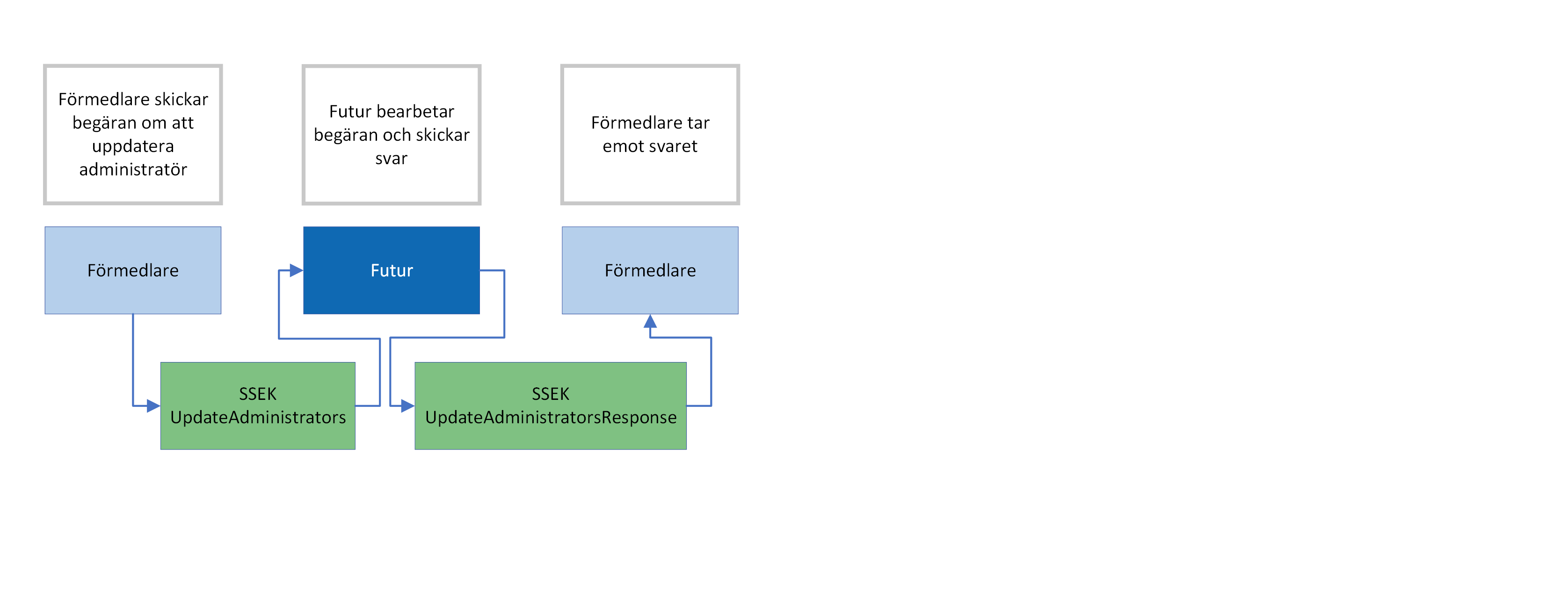 Begäran om att uppdatera administratör (HR-administratörer / handläggare) för avtalet sker med XML-schemat UpdateAdministrators. Efter att Futur bearbetat begäran, skickas ett svar med XML-schemat UpdateAdministratorsResponse.